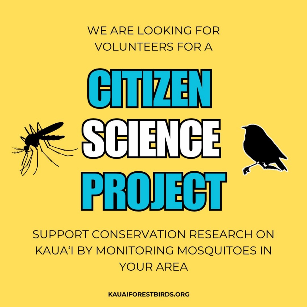 The Kaua‘i Forest Bird Recovery Project is launching a Citizen Science Mosquito Monitoring Project and is seeking community volunteers living between Kalaheo and Kekaha to participate.