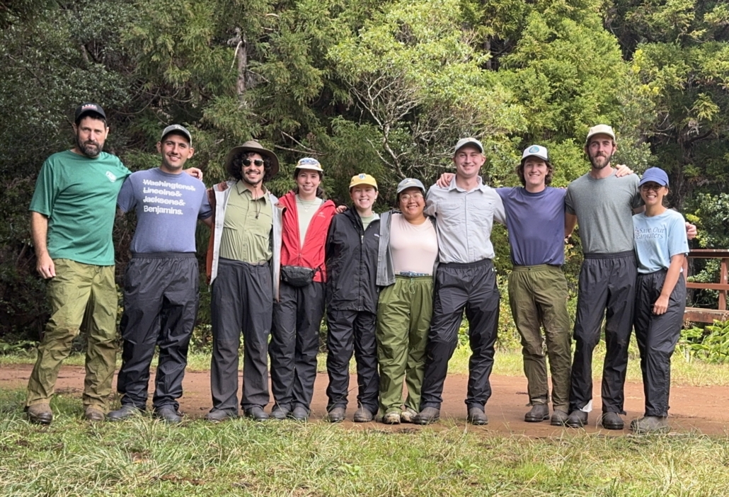 KFBRP avian conservation technicians hike through dense tangled forest on obscured trails and steep slopes to remote areas of the ‘Alakai where they work on projects that focus on three critically endangered Hawaiian songbirds. The ‘akikiki, ‘akeke’e and puaiohi inhabit this region of extremely wet, beautiful, and rugged montane rainforest on Kaua’i. While in the field, these staff members focus on searching for endangered bird nests, conducting bird surveys, vegetation and habitat sampling, mist-netting and banding birds, radio-tagging and tracking birds, and maintaining rat control grids. The work is physically challenging and the field conditions are often damp and chilly. Field Technicians also assist with extracting eggs from ‘akikiki and ‘akeke’e nests to continue building a captive breeding program in collaboration with the San Diego Zoo.